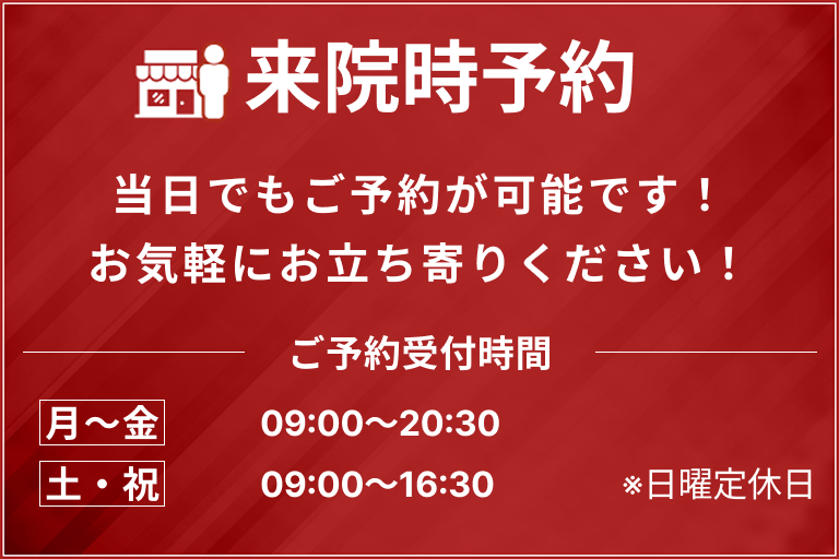 | 受付時間 | 月 | 火 | 水 | 木 | 金 | 土 | 日 | 祝 |